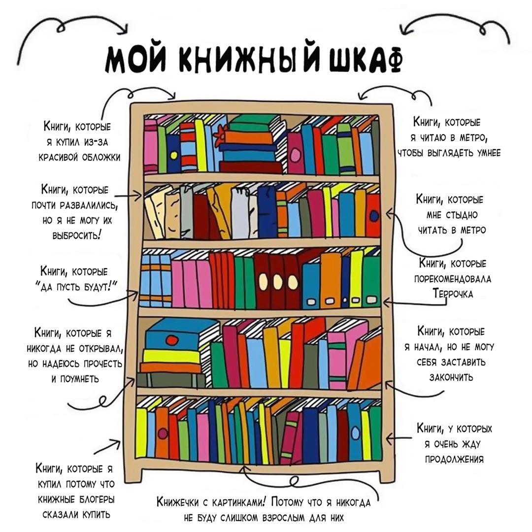 Правильный ход — по возможности хранить книги так, чтобы они не раздражали. Принять правило «читаю ту книгу, которая есть в списке».