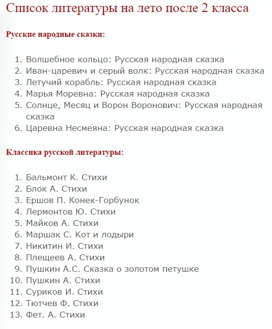 Список художественной литературы на лето от челябинского Физико-матетического лицея №31
