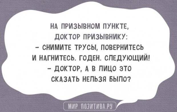 Единственный врач, который считает, что у Вас все в порядке, работает в военкомате.