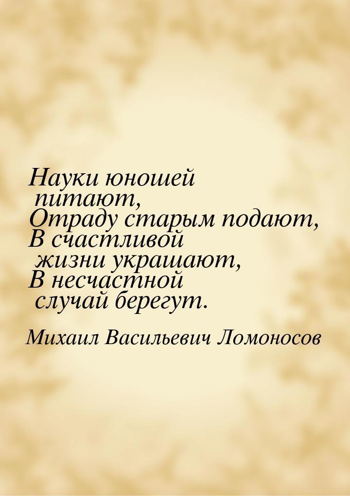Стих наука юношей питает отраду старым подают: Науки юношей питают (Отрывок из оды) — Ломоносов. Полный текст стихотворения — Науки юношей питают (Отрывок из оды)