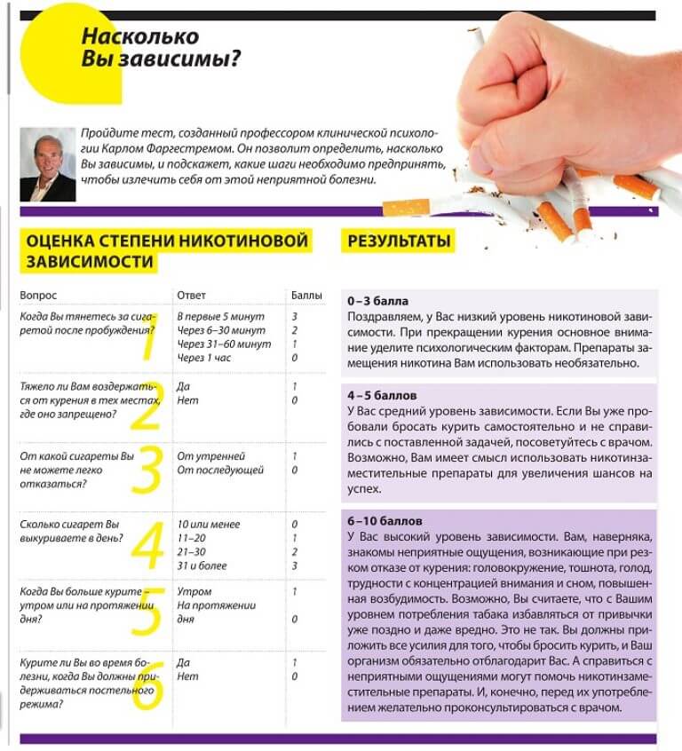 Тест Фагерстрома определяет связь между индивидуальным баллом и тяжестью проявления абстинентного синдрома.
