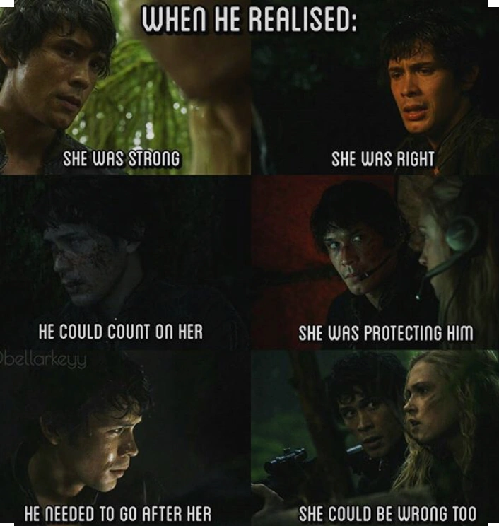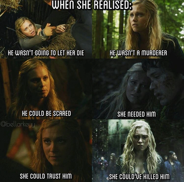 В телесериале отношения Кларка и Беллами охватывают почти все названия, кроме романтических. Они были врагами, союзниками, партнерами и друзьями.Однако Беллами и Кларк так и не продвинулись на романтическую территорию. Их новые аналоги отличаются от этого. В романах Кларк и Беллами быстро переходят от непростых союзников к любовным интересам. В конце четвертой книги они решили обручиться. Тем не менее, их отношения в романах не такие динамичные, как в телесериалах. На экране Беллами и Кларк пережили гораздо больше, и намного хуже вместе.