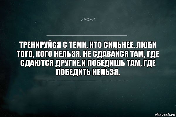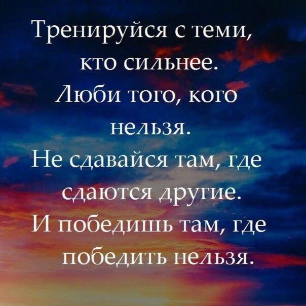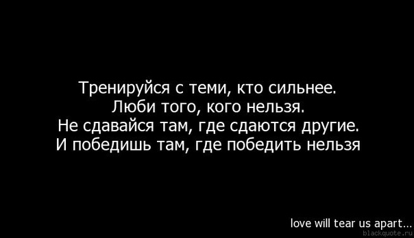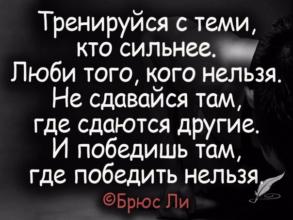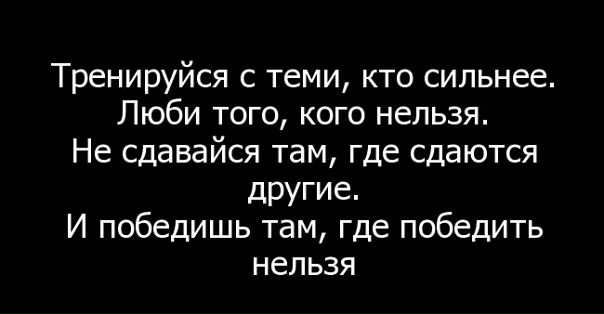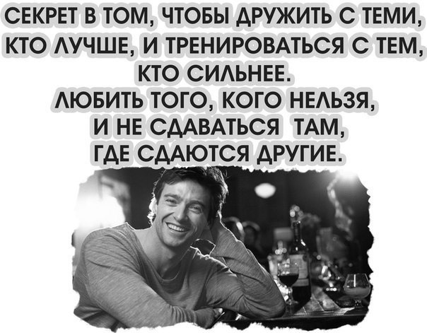 Секрет в том, чтобы общаться с теми, кто лучше. Драться с теми, кто сильнее. Любить того, кого нельзя. Не умирать там, где умирают другие.