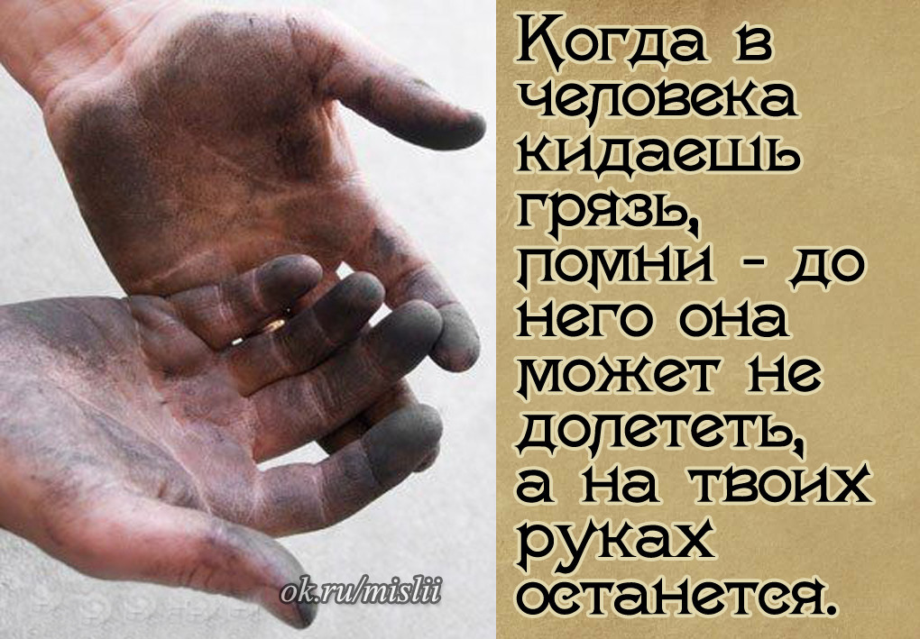 Когда в грязи стираешь платье ты, Не жди от этой стирки чистоты.