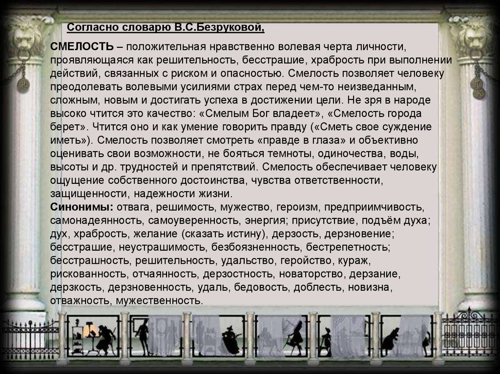 Смелые люди успешны и добиваются поставленных целей. Храбрый человек всегда принимает сложные решения, не боится перемен и движется только вперед. Смелость и решительность — понятия неразделимые. Поэтому и существует много высказываний об этих чертах характера.