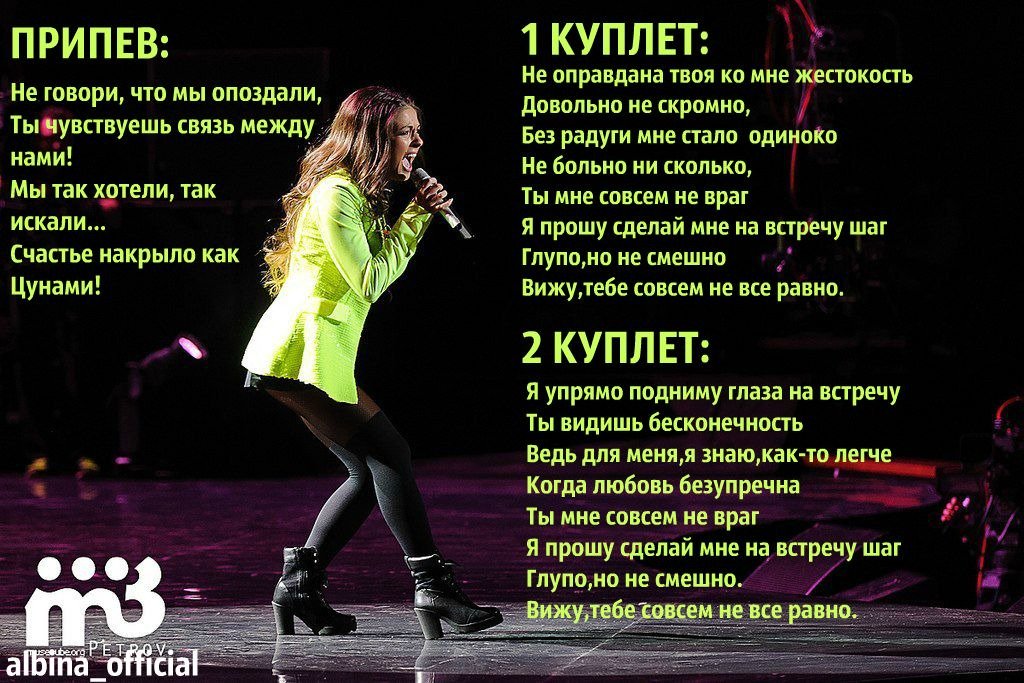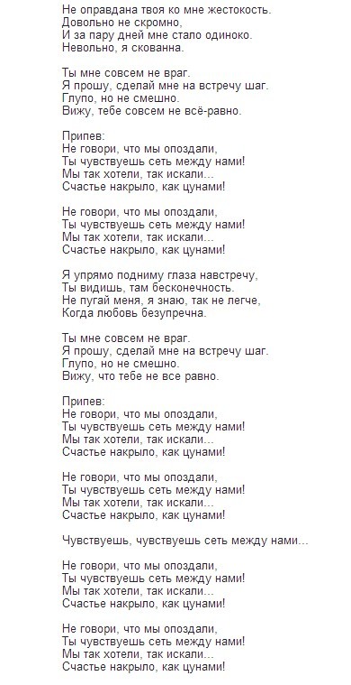 Оригинальный текст и слова песни Не говори что мы опоздали,ты мне совсем не враг: