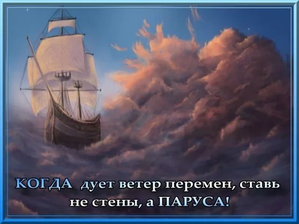 «Ты не можешь менять направление ветра, но всегда можешь поднять паруса, чтоб достичь своей цели». Оскар Уальд.