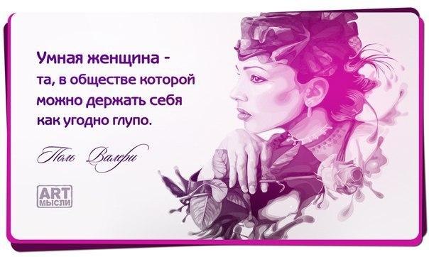 - Умная женщина та, в обществе которой можно держать себя как угодно глупо. (П. Валери)