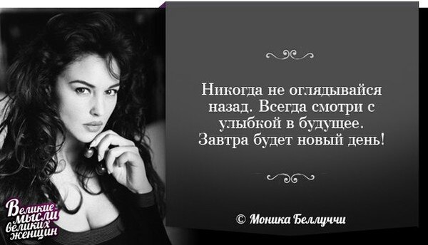 Никогда не оглядывайся назад. Всегда смотри с улыбкой в будущее. Завтра будет новый день.