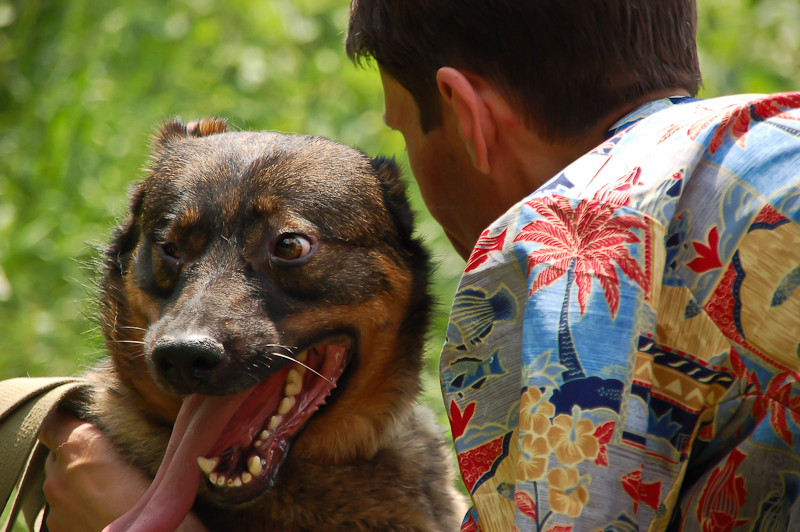 Знакомый как-то зашёл, похвастал: «Да я семнадцать лет на границе служил, с любой собакой справлюсь. Хотите на спор?» Так она его так схватила, что водой их пришлось разливать.