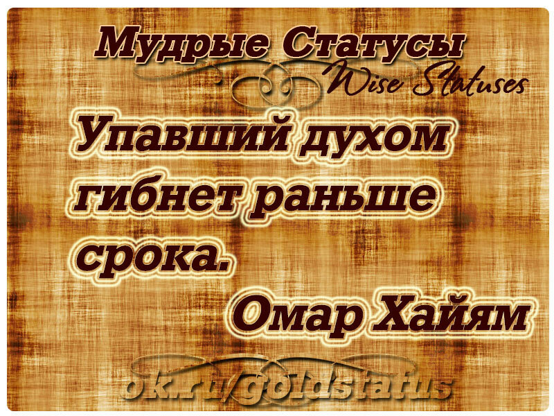 Не хмурь бровей из-за ударов рока, упавший духом, гибнет раньше срока.