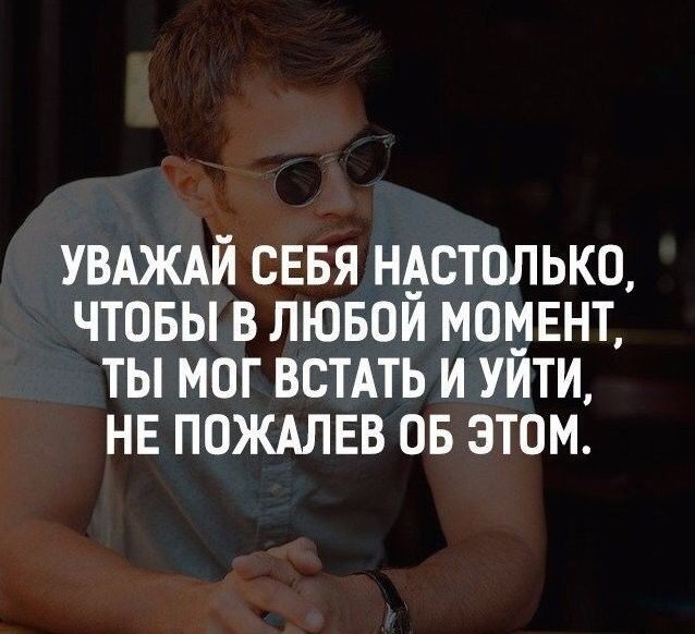 Уважай себя настолько, чтобы в любой момент, ты мог встать и уйти, не пожалев об этом. момент