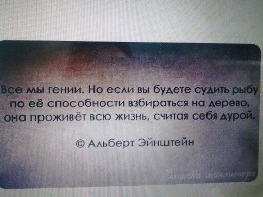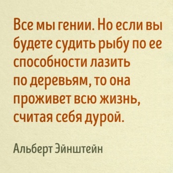 Все мы гении. Но если вы будете судить рыбу по её способности взбираться на дерево, она проживёт всю жизнь, считая себя дурой.