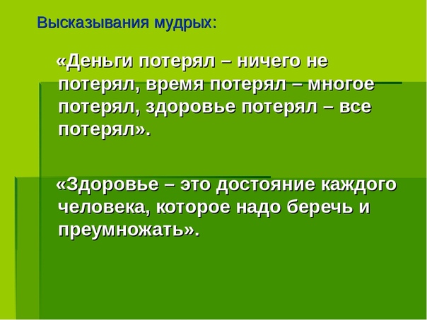 Здоровье — это самое ценное наследство. (автор высказывания: неизвестный)