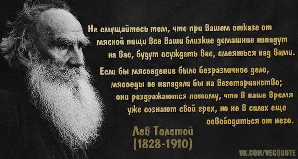 «Убивая животных ради пропитания, человек подавляет в себе высшие духовные чувства — сострадание и жалость к другим живым существам, подобным ему, — и, переступая через себя, ожесточает свое сердце».
