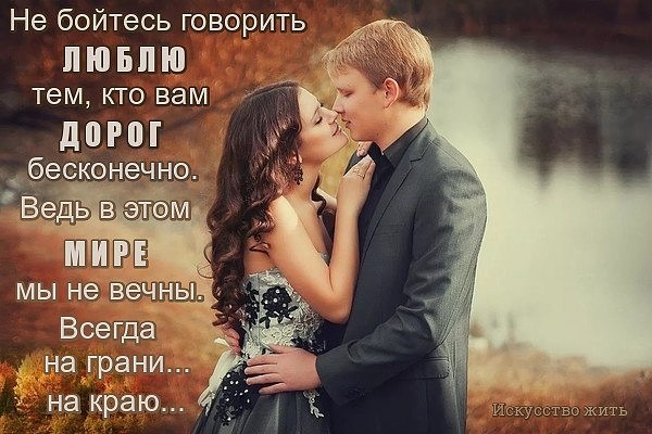 Навряд ли кто-нибудь из нас задумывался о другом произношении и значении этой фразы. Слова «я тебя люблю» можно, да и нужно произносить без ожидания чего-либо, и без желания что-либо получить взамен; только мы не умеем этого делать, вернее забыли, как это делается. Говорю именно «забыли» потому, что наша душа (она совершенна изначально), придя на Землю, уже имеет совершенный опыт — Любить. И лишь обретя новую физическую оболочку, наше подсознание закрывается, и с нами остается только наше «эго»и происходит это для того, чтобы мы уже самостоятельно и осознанно захотели обрести новый опыт в любви, и тем самым, подняться на новый уровень, и обрести новые вибрации…