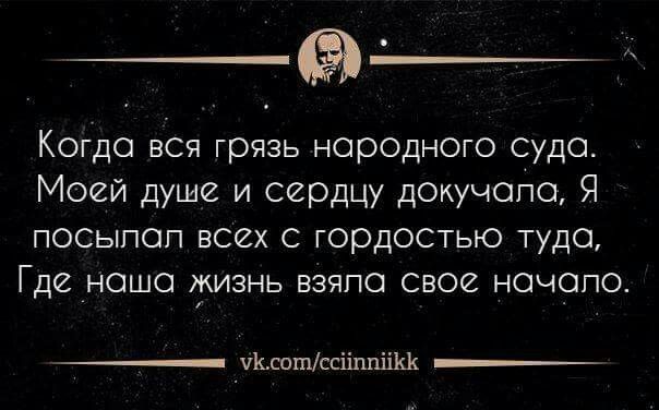 «Когда вся грязь народного суда моей душе и сердцу докучала, я посылаю всех туда, где наша жизнь взяла своё начало.» А.Горбунов. А вы часто материтесь? жизнь душа начало сердце суд грязь горбунов