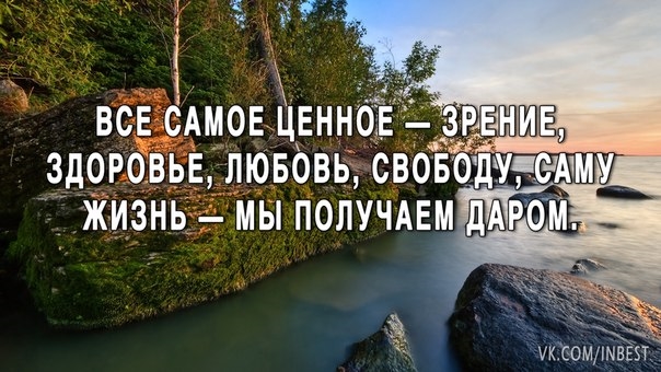 Твое здоровье — чистый воздух, вода и пища. Вставай утром с радостью, ложись спать с улыбкой. Ты радуешься, улыбаешься — значит, ты здоров. Не лечи болезнь, лечи свою жизнь, живи по законам природы, разума. Когда нет здоровья, молчит мудрость, не может расцвести искусство, не играют силы, бесполезно богатство и бессилен разум.