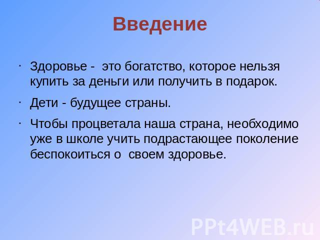 Здоровье – самое ценное, что есть у человека. Горизонты здоровья беспредельны, считается, что человек может прожить до 150 лет и более. Каждый мечтает прожить свой век, сохранив физическое и психическое здоровье. На эту тему написано масса книг.