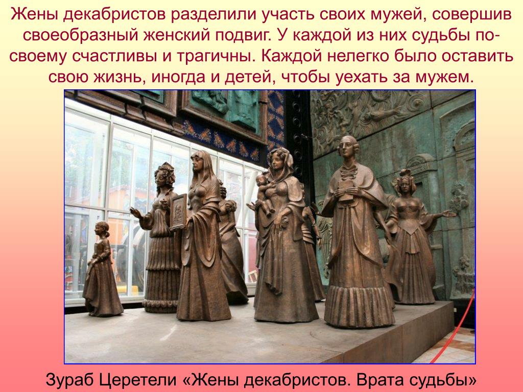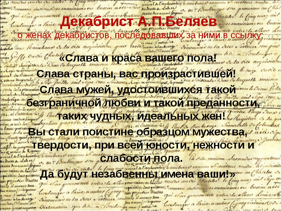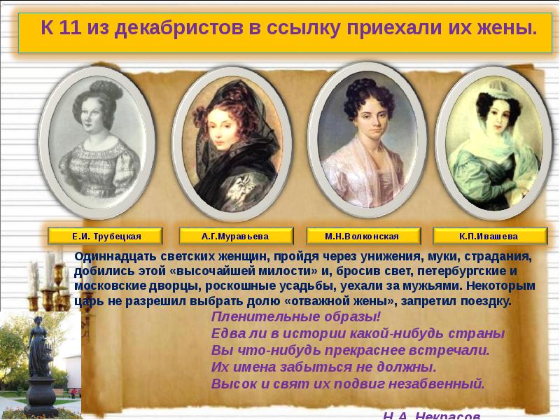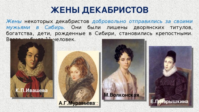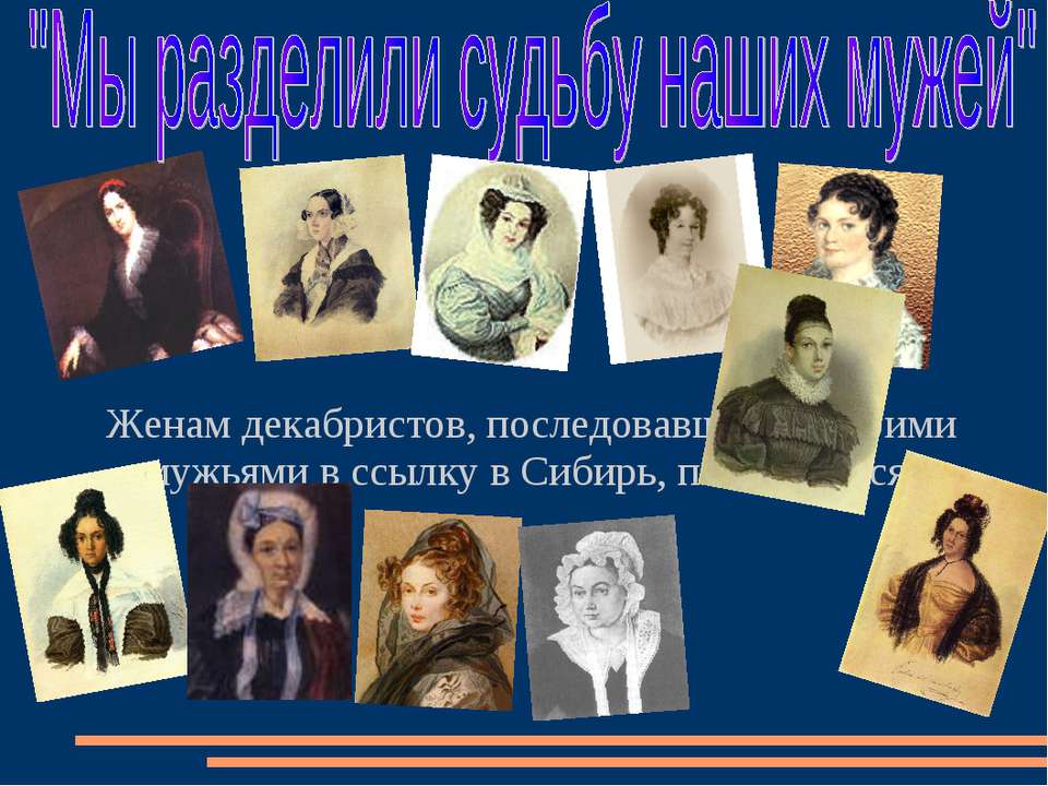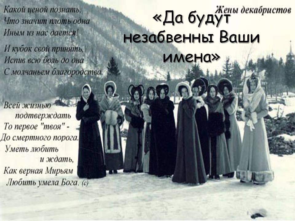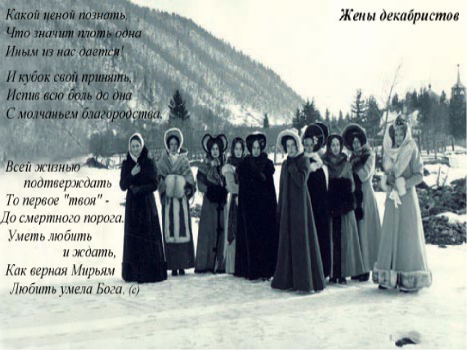 Женам декабристов, последовавших за своими мужьями в ссылку в Сибирь, посвящается: