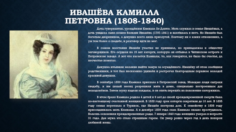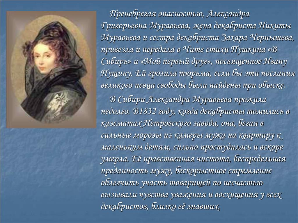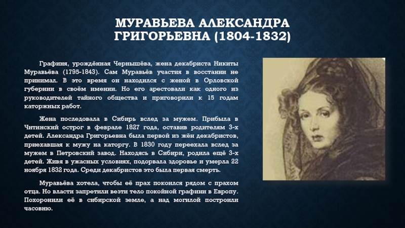 - Умерла А. Муравьева в 1832 году в Сибири.
