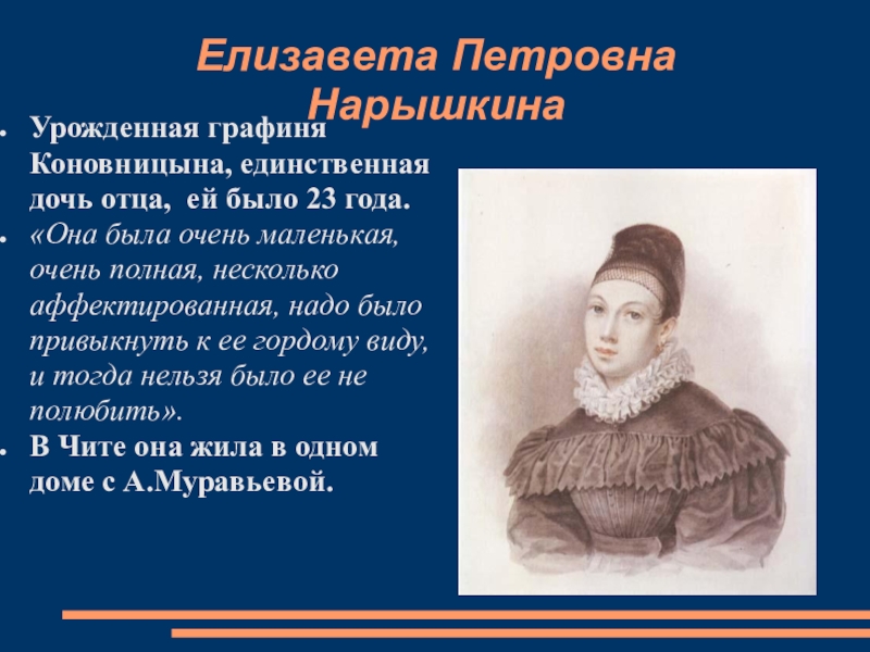 - Урожденная графиня Коновницына, единственная дочь отца, ей было 23 года.