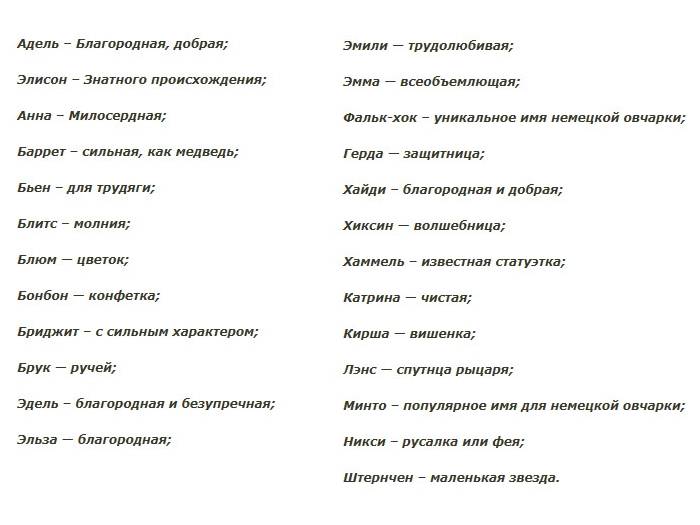У каждой породы есть уникальные особенности внешности и характера. Есть несколько имён, которыми традиционно называют «девочек» той или иной породы: